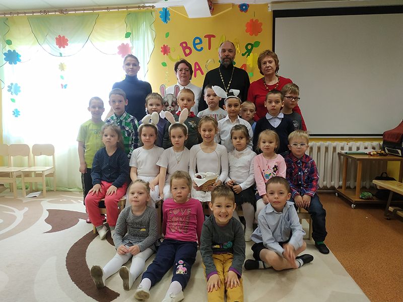 В понедельник Светлой Седьмицы в детском саду "Светлячок" деревни Княжево прошел детский Пасхальный утренник, в котором принял участие настоятель Покровского храма деревни Надеждино протоиерей Ростислав Шишов.